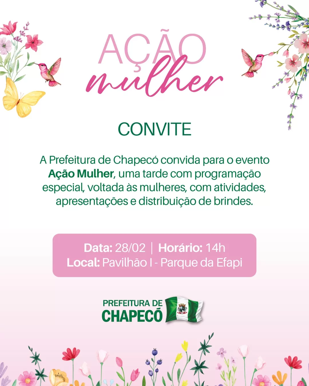 “Será uma tarde agradável, um momento para reencontrar as amigas e celebrar juntas. É uma forma de reconhecimento e valorização das mulheres, por todo o trabalho realizado e pela dedicação a Chapecó”, destacou.