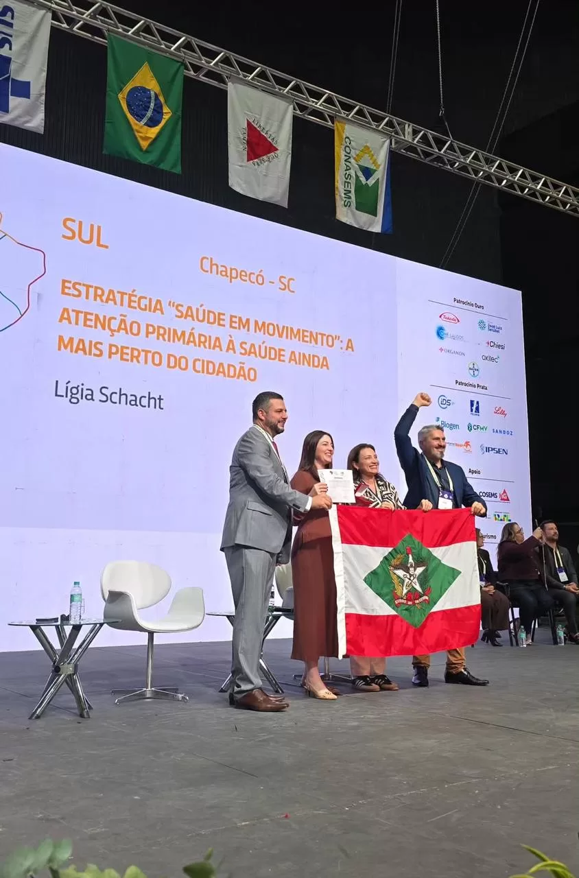 A Estratégia Saúde em Movimento foi inicialmente apresentada durante o 9º Congresso de Secretarias Municipais de Saúde de Santa Catarina, realizado no município de Blumenau/SC, no período de 26 a 28 de março. Na ocasião, foi reconhecida como uma experiência exitosa no âmbito estadual, sendo selecionada para representar Santa Catarina na etapa nacional, realizada esta semana na capital mineira. “A Saúde de Chapecó está em festa. Temos um projeto exitoso reconhecido no país inteiro”, declarou o secretário de Saúde de Chapecó, João Lenz. Também participou do evento a gerente de Atenção Básica, Ligia Schacht.